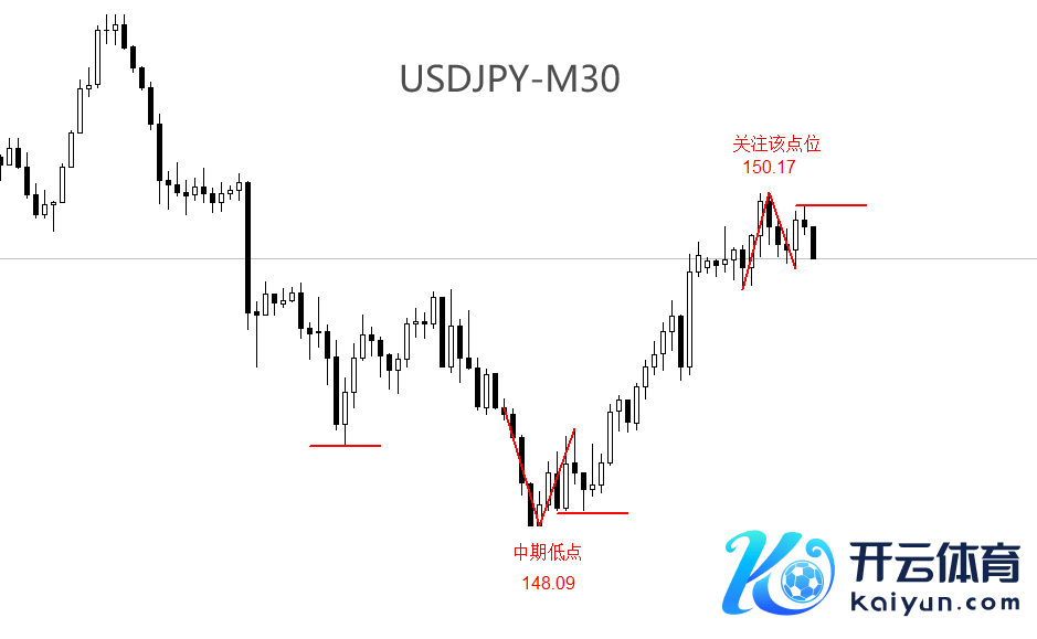 30分钟级别来看,USDJPY正处于运动的高涨波段。前一个中期低点在148.09处,变成时分在昨日好意思盘,比较可靠。最新的中期高点尚未变成,但最新的高点150.17有可能演变为中期高点,取决于右侧下降波段能否冲破149.59点(分形结构底部)。要是下破到手,则后市发展倾向于下降,150.17也将阐发为中期高点;要是下破失败,行情上破150.17,则中期高点消失,行情不竭在中期低点的支握下高涨。